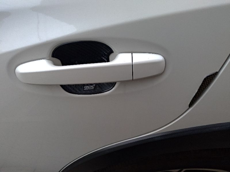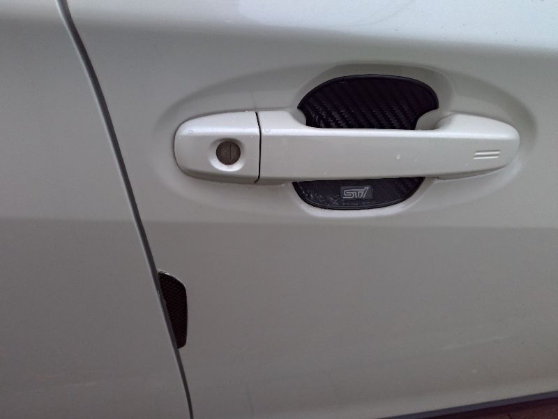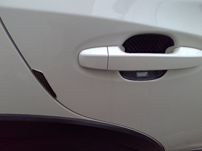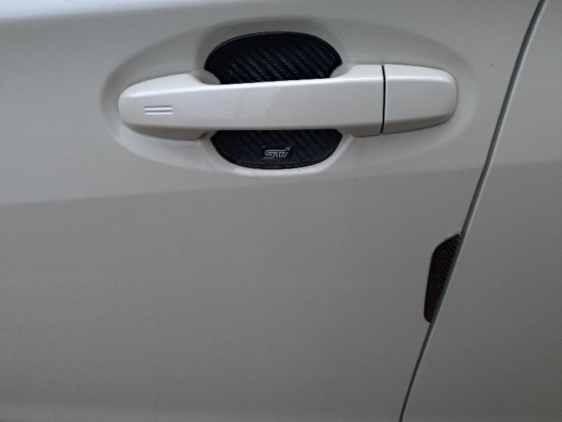 純正のSTIドアハンドルプロテクターとドアプロテクター。ワンポイントにもなり引き締まります。