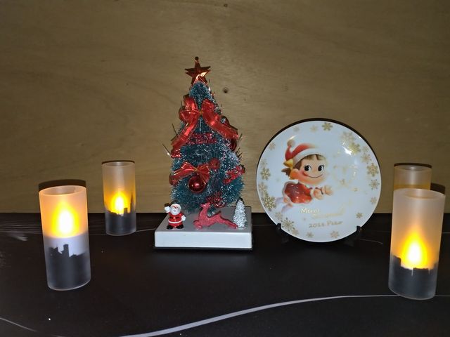 それに不二家のクリスマスケーキでいただいたペコちゃん絵皿を添えて。ペコちゃんの日に予約しましたのでポイント5倍。40ポイントいただきました。このペースでいくとからくりペコちゃんが家に来るのも遠くないかも。
