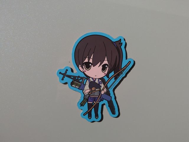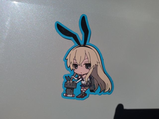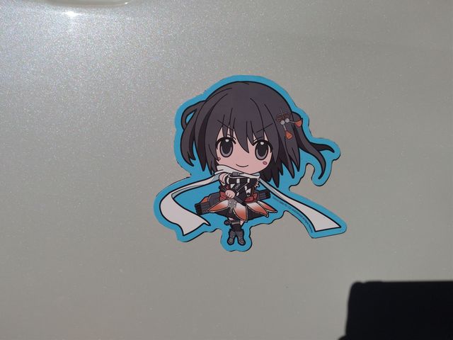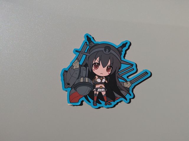 らぐほのえりかのドライブレコーダー作動中ステッカー(葵) と大酒飲みの艦これ「金剛」おかわりステッカー。強力磁石ではがれません。