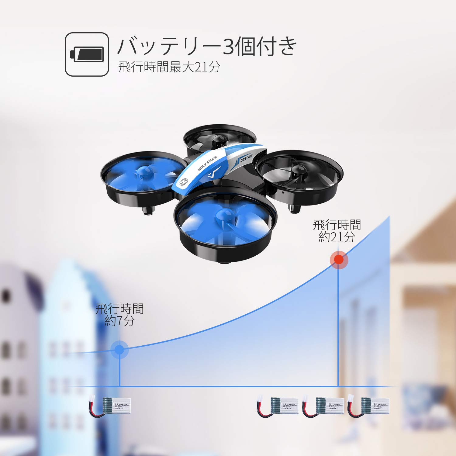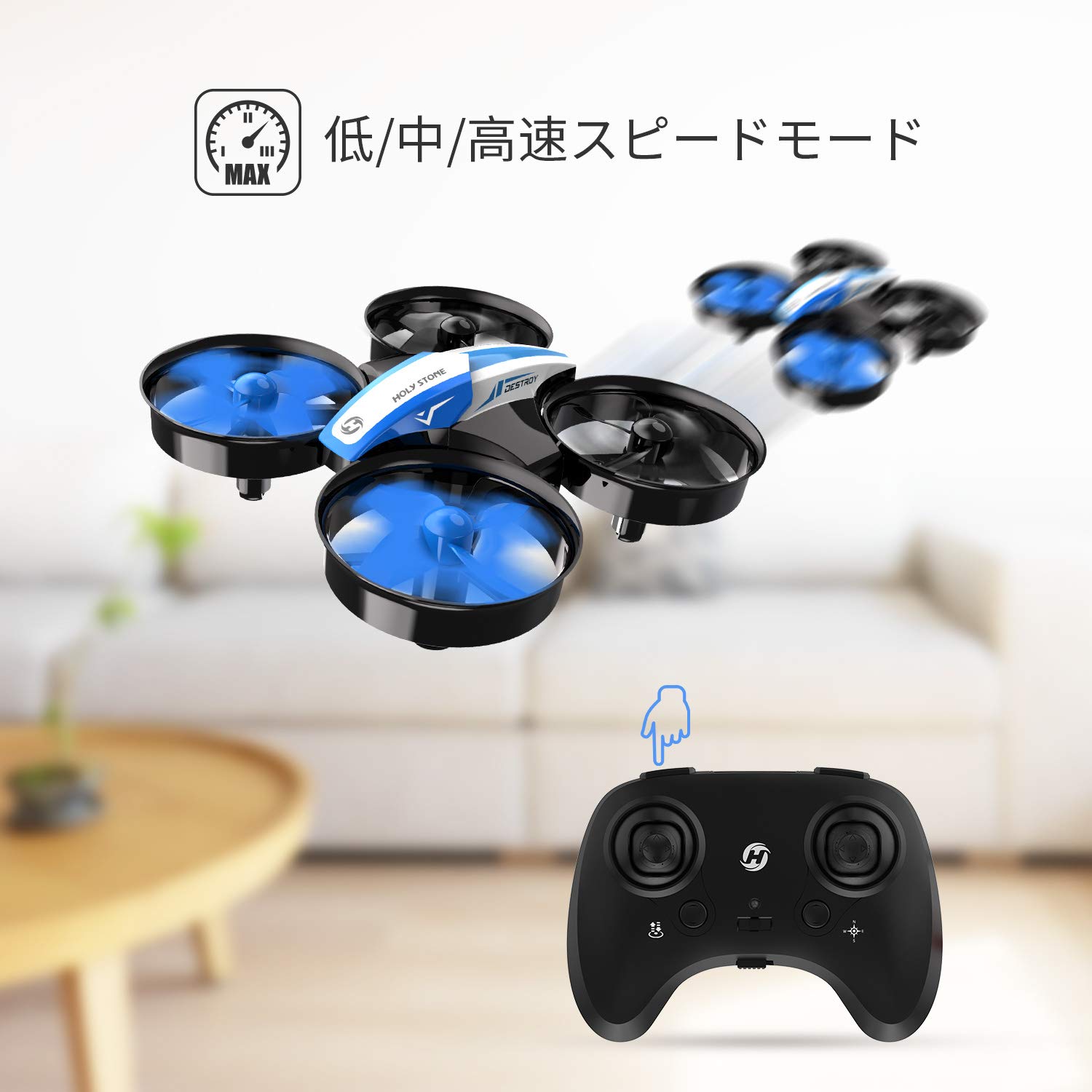 TOYドローンといえども、あなどれません、気圧センサーがついており、自動ホバリングでだれでも楽しく遊ぶことができます。このクラスのドローンは数多く発売されてますのでどれを選択しても同じ性能です。自分は、屋外練習用に航空法の規制のないGPS搭載の「Hubsan H216A X4 DESIRE PRO」も購入しましたので、このクラスのミニドローンを選択しました。