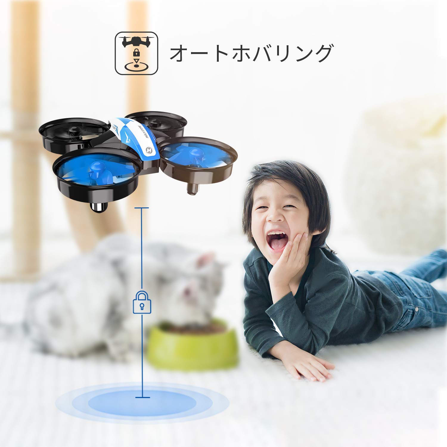 自動ホバリング 最先端の6軸ジャイロ制御システムの搭載に伴い、抜群の安定性を確保し、安定した飛行を実現します。気圧センサーによる高度維持機能を搭載してホバリングが本当に簡単にでき、ホバリングできないドローンより、安定性においてもっと優れて、初心者でも簡単に制御できます。