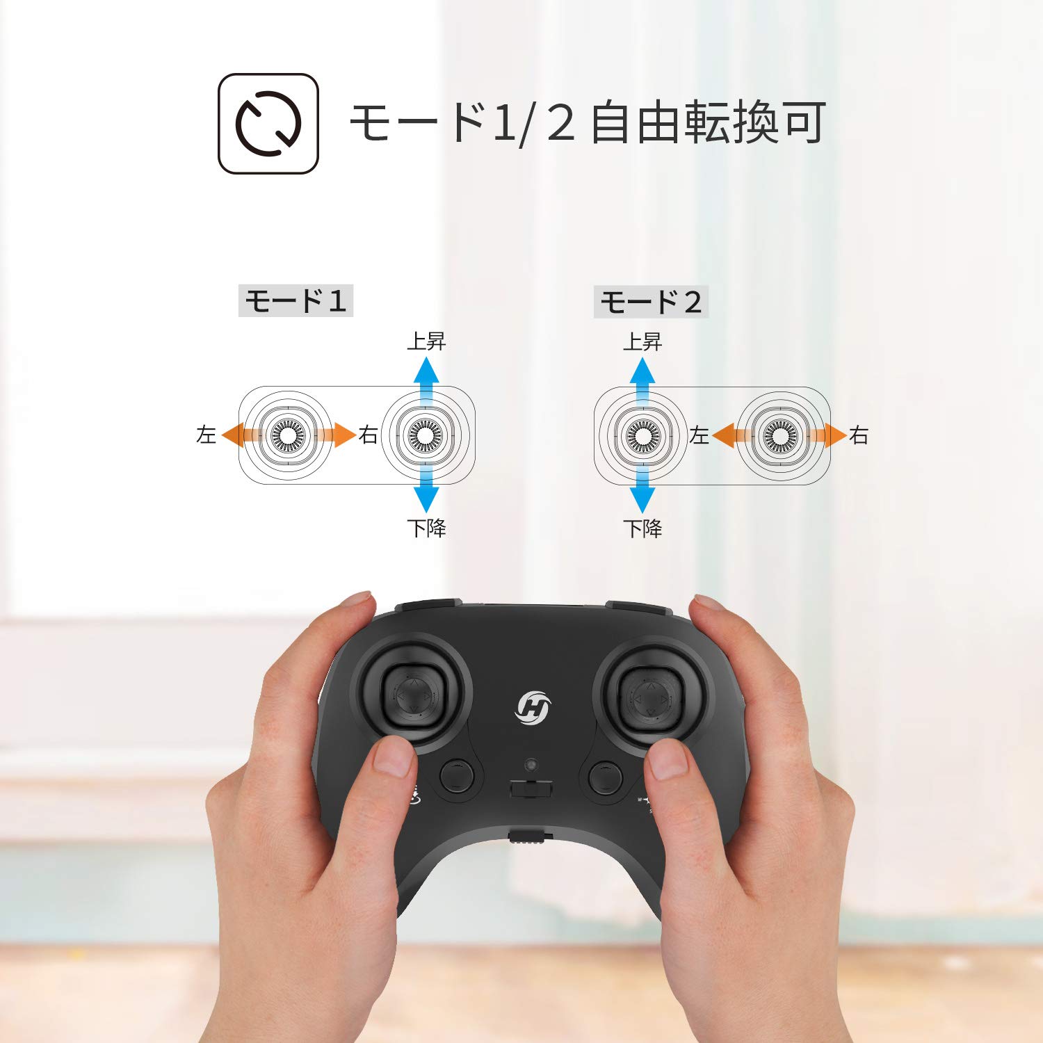 モード1/2自由転換可 スロットルレバーと方向コントロール左右手で交換できます。慣れているモードを選択することができます。